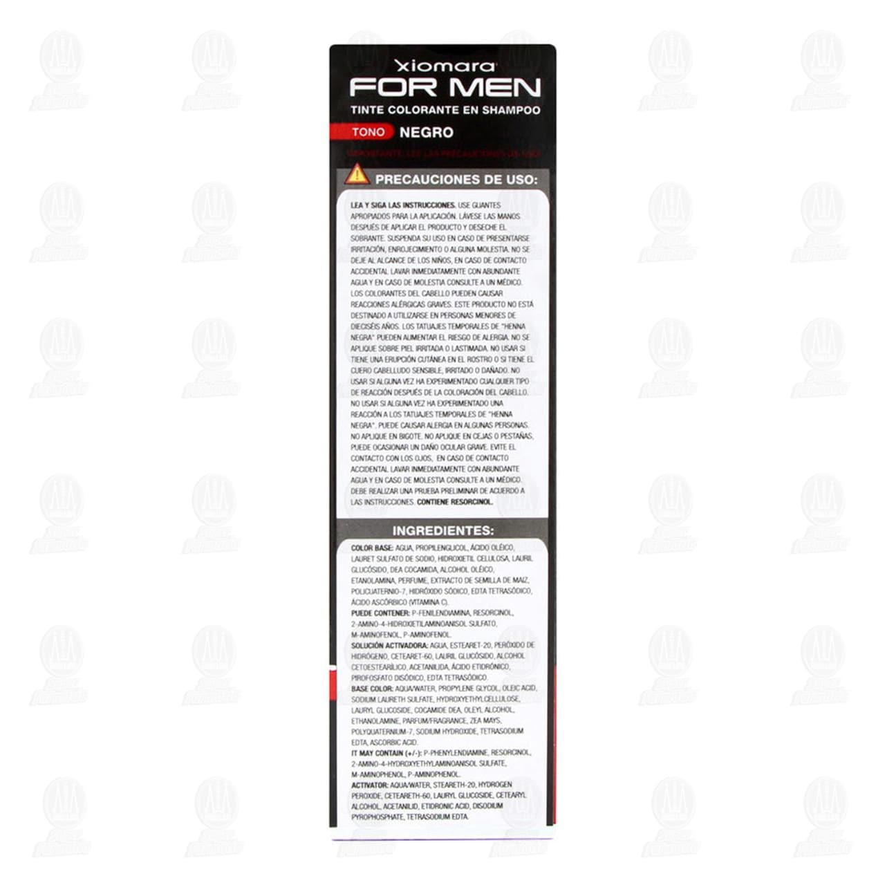 Use guantes apropiados para la aplicación. Lávese las manos después de aplicar el producto y deseche el sobrante. Suspenda su uso en caso de presentarse irritación, enrojecimiento o alguna molestia. No se deje al alcance de los niños. En caso de contacto accidental, lavar inmediatamente con abundante agua y en caso de molestia consulte a un médico. Los colorantes del cabello pueden causar reacciones alérgicas graves. Este producto no está destinado a utilizarse en personas menores de dieciséis años. Los tatuajes temporales de "henna negra" pueden aumentar el riesgo de alergia. No se aplique sobre piel irritada o lastimada. No usar si tiene una erupción cutánea en el rostro o si tiene el cuero cabelludo sensible, irritado o dañado. No usar si alguna vez ha experimentado cualquier tipo de reacción después de la coloración del cabello. No usar si alguna vez ha experimentado una reacción a los tatuajes temporales de "henna negra". Puede causar alergia en algunas. No aplique en bigote. No aplique en cejas o pestañas. Puede ocasionar un daño ocular grave. Evite el contacto con los ojos. En caso de contacto accidental lavar inmediatamente con abundante agua y en caso de molestia consulte a un médico. Debe realizar una prueba preliminar de acuerdo a las instrucciones. Contiene resorcinol. Prueba preliminar de sensibilidad: Las alergias pueden desarrollarse aún después de haber aplicado un tinte anteriormente, por esta razón debe aplicarse la prueba 48 horas antes siempre que se vaya a teñir el cabello. Aplique una pequeña cantidad del tinte en el antebrazo (área interna del codo). Deje secar, no lavar el área de prueba durante 48 horas. Observe el área de prueba durante las 48 horas, si no hay reacción, proceda a teñir el cabello. Si hay enrojecimiento, comezón, irritación o salpullido en el área de prueba no aplique el tinte. La ausencia de reacción en esta prueba no garantiza que no pueda presentarse una reacción alérgicaDetalles del producto