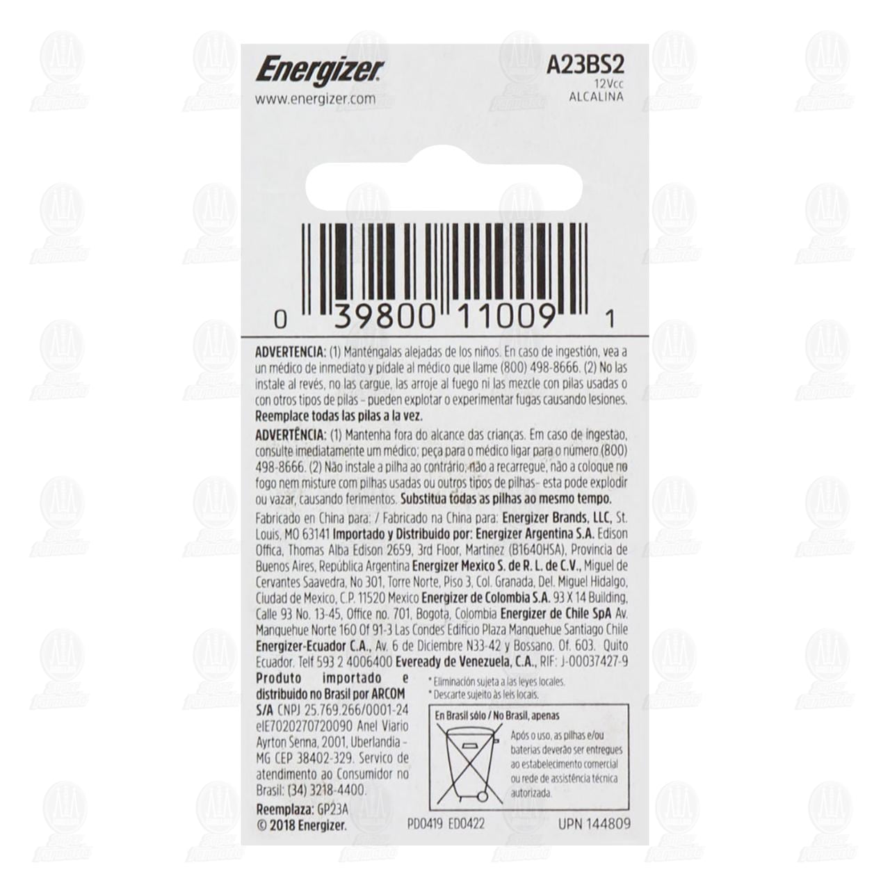Pilas alcalinas Energizer A23 de 12V, . Contiene 2 piezas.