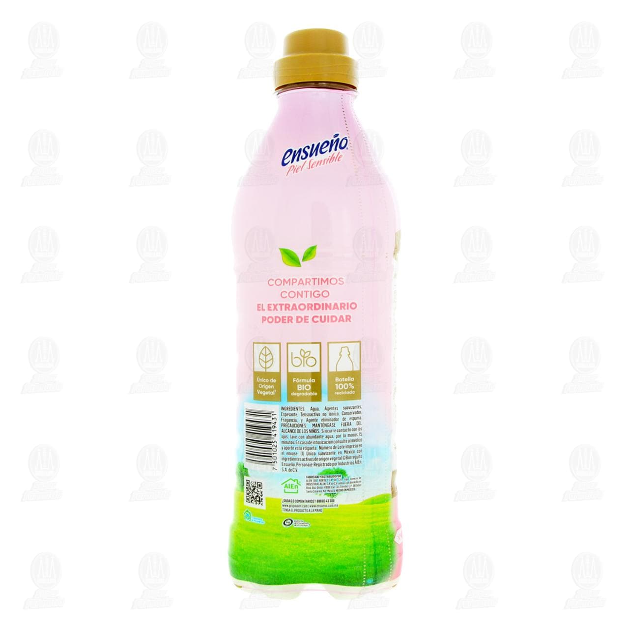 Suavizante de Telas Ensueño Piel Sensible zero enjuague único de origen vegetal, Suavidad que se siente. Envase con 740 mililitros.