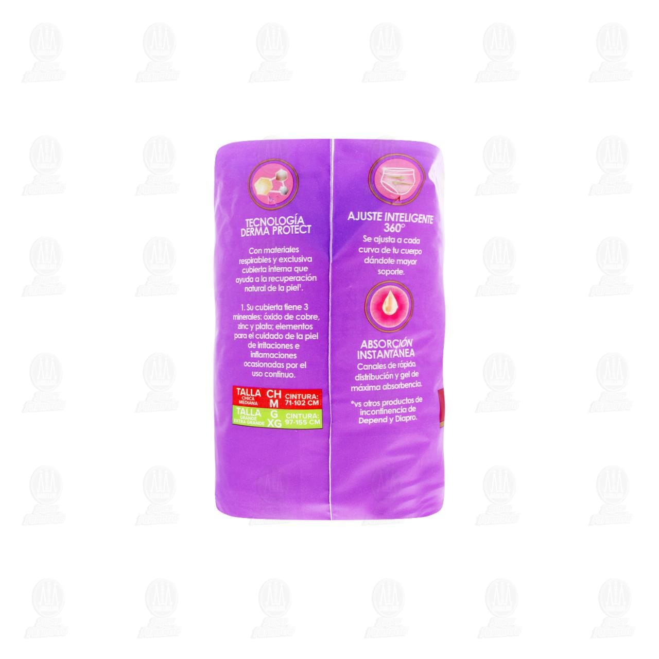 Ropa Interior Depend Mujer Talla chica-mediana (cintura 71-102 centimetros) cubierta interna enriquecida con minerales y ajuste inteligente 360° que se adapta a cada curva del cuerpo. Contiene 15 piezas.