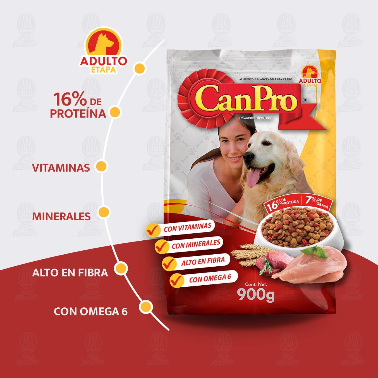 CanPro es un alimento balanceado para perros adultos de todas las razas, que está formulado para proporcionar proteína, energía y grasa que su perro necesita. Bolsa con 900 gramos.