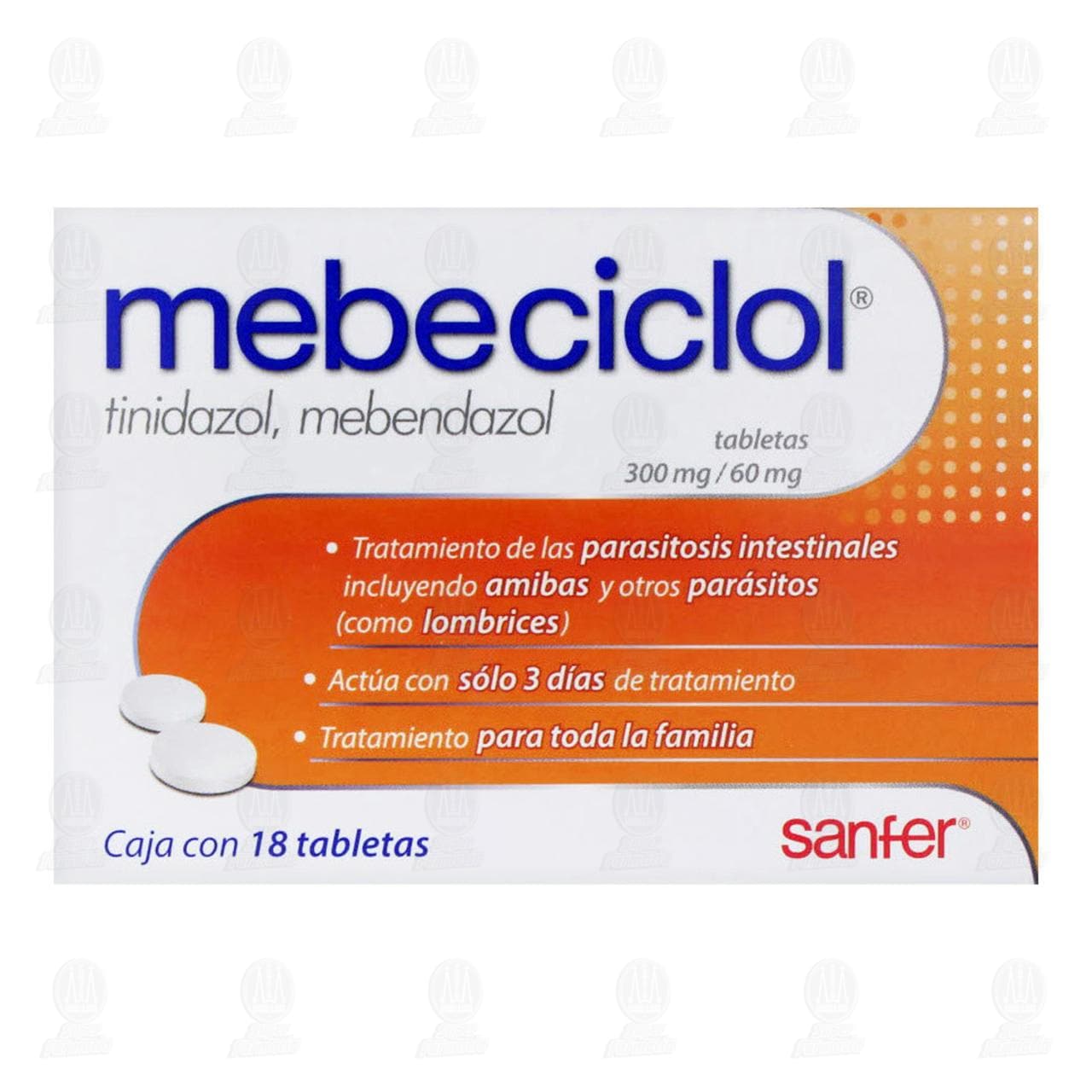 Mebeciclol 300mg/60mg, 18 Tabletas (Tinidazol, Mebendazol)