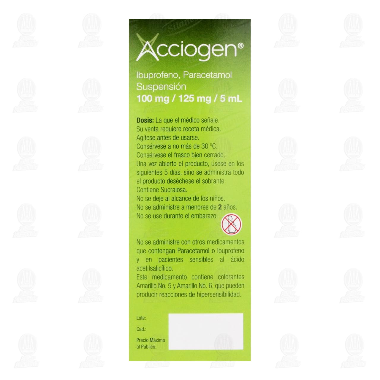 Acciogen 100 mg/125mg/5ml Suspensión. Frasco con 120 mililitros (Ibuprofeno, Paracetamol)