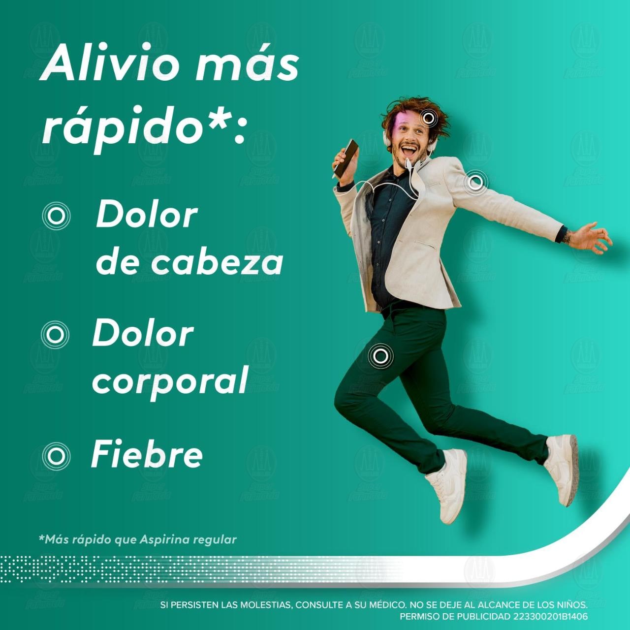Aspirina Advanced alivia el dolor dos veces más rápido gracias a su tecnología de partículas micro activas que aceleran el alivio de dolor de cabeza a causa de estrés, falta de sueño, gripe, tensión muscular y fiebre (Ácido acetilsalicílico)