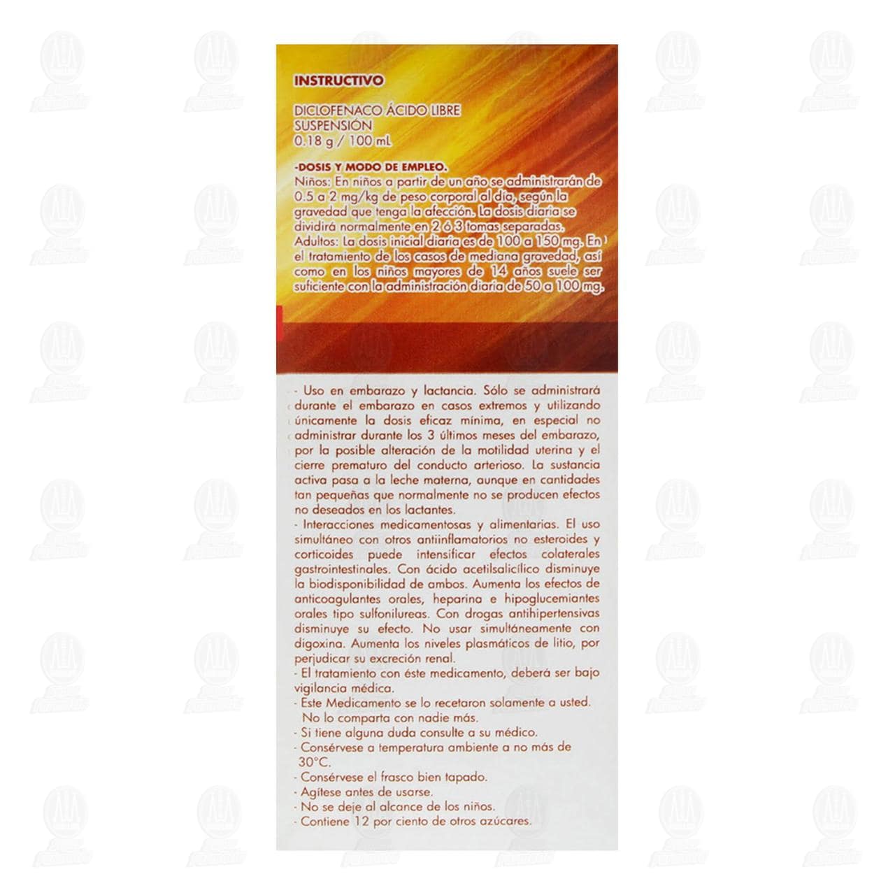 Diclofenaco Ácido Libre 0.18g/100ml Suspensión, 120 mililitros Pharmalife.