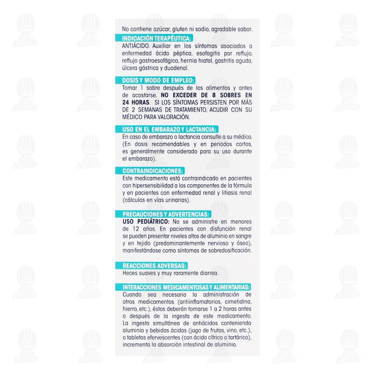 Tomar 1 sobre después de los alimentos y antes de acostarse. No exceder de 8 sobres en 24 horas. Si los síntomas persisten por más de 2 semanas de tratamiento, acudir con médico para valoración.