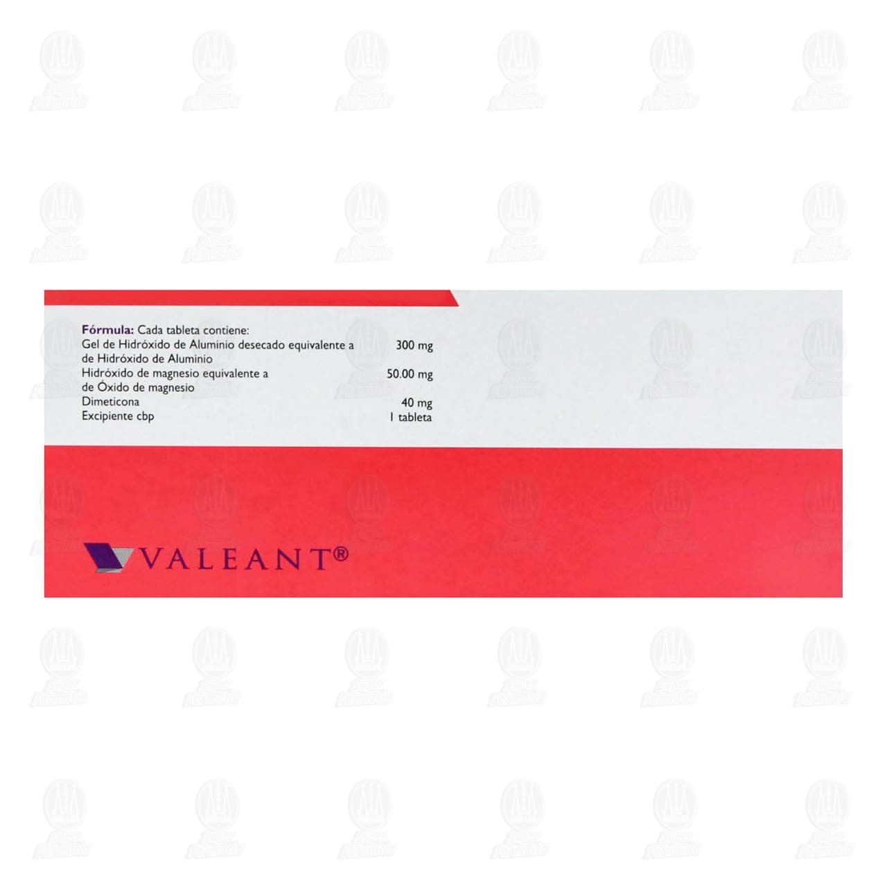 El hidróxido de aluminio reacciona con el ácido clorhídrico originando agua y cloruro de aluminio, que se absorbe sólo del 17 al 30% y se elimina totalmente por vía urinaria, el resto no absorbido se elimina por heces. El hidróxido de magnesio reacciona originando agua y cloruro de magnesio, éste se absorbe sólo del 15 al 30%, para eliminarse por vía renal, y el resto no absorbido se elimina en heces. La dimeticona no se absorbe, se excreta en heces sin cambios.