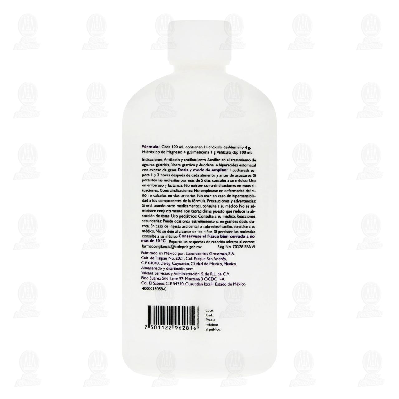 INDICACIONES TERAPÉUTICAS: Antiácido y antiflatulento, en hiperacidez por enfermedad ácido péptica, dispepsia, gastritis, esofagitis, úlcera gástrica y duodenal. Por ser libre de sodio, está indicado aun en pacientes con dieta hiposódica, (como hipertensos, cardiópatas y cirróticos).