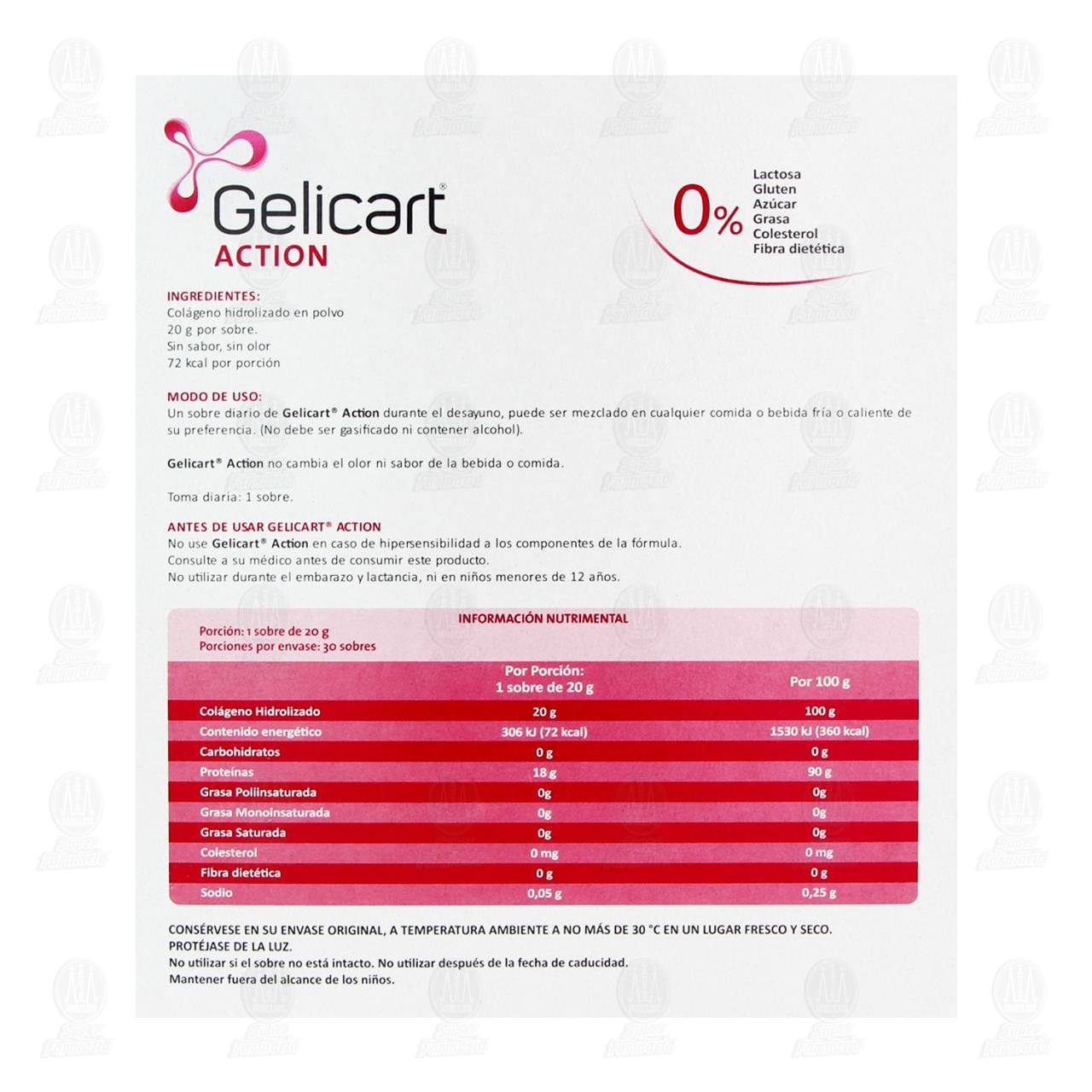 Suplemento Alimenticio Gelicart Action Colágeno Hidrolizado, Contiene 600 gramos con 30 sobres de 20 gramos (A base de proteína hidrolizada)