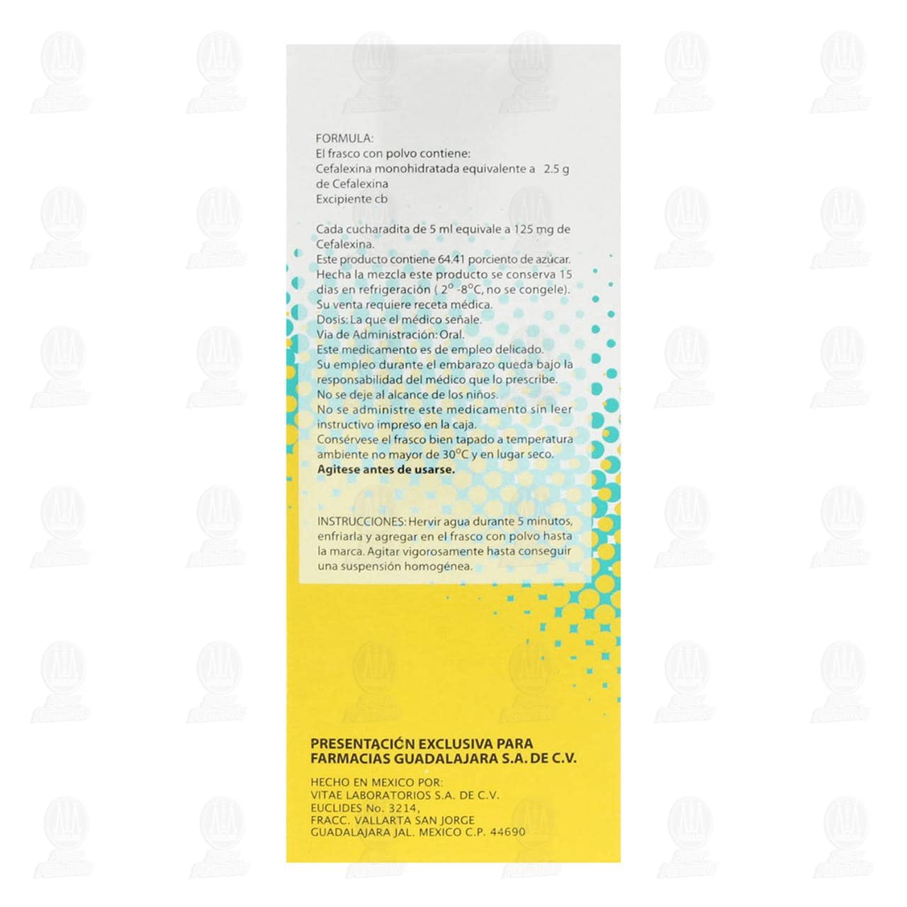 Cefalexina 125mg/5ml Suspensión, 100 ml Pharmalife.