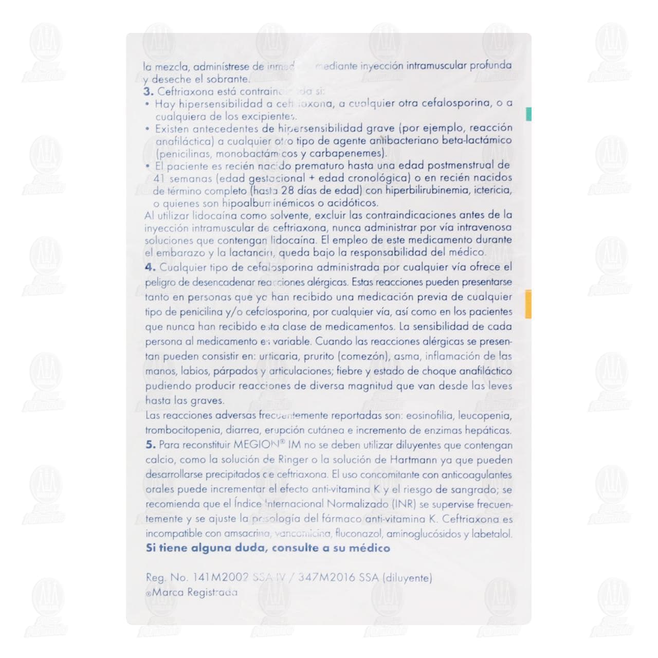 Pack Megion IM 1 gr, Solución Inyectable 3 Cajas con 1 Ámpula (Ceftriaxona)