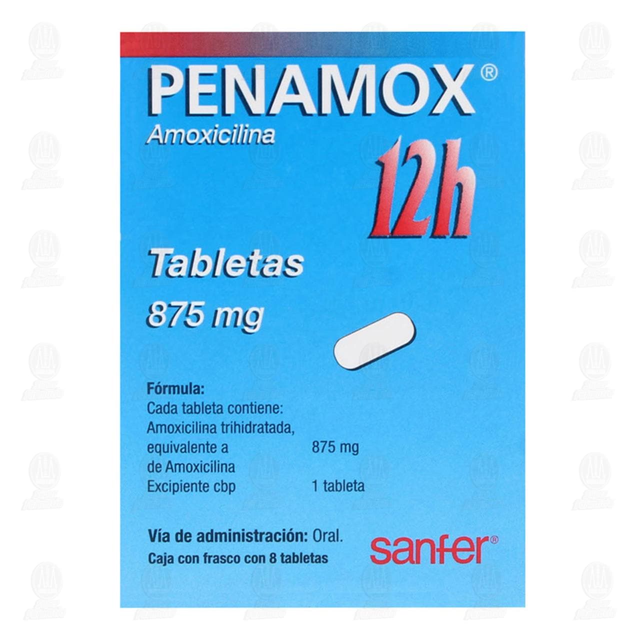 PENAMOX® 12H Tabletas: Caja con 8 de 875 mg.