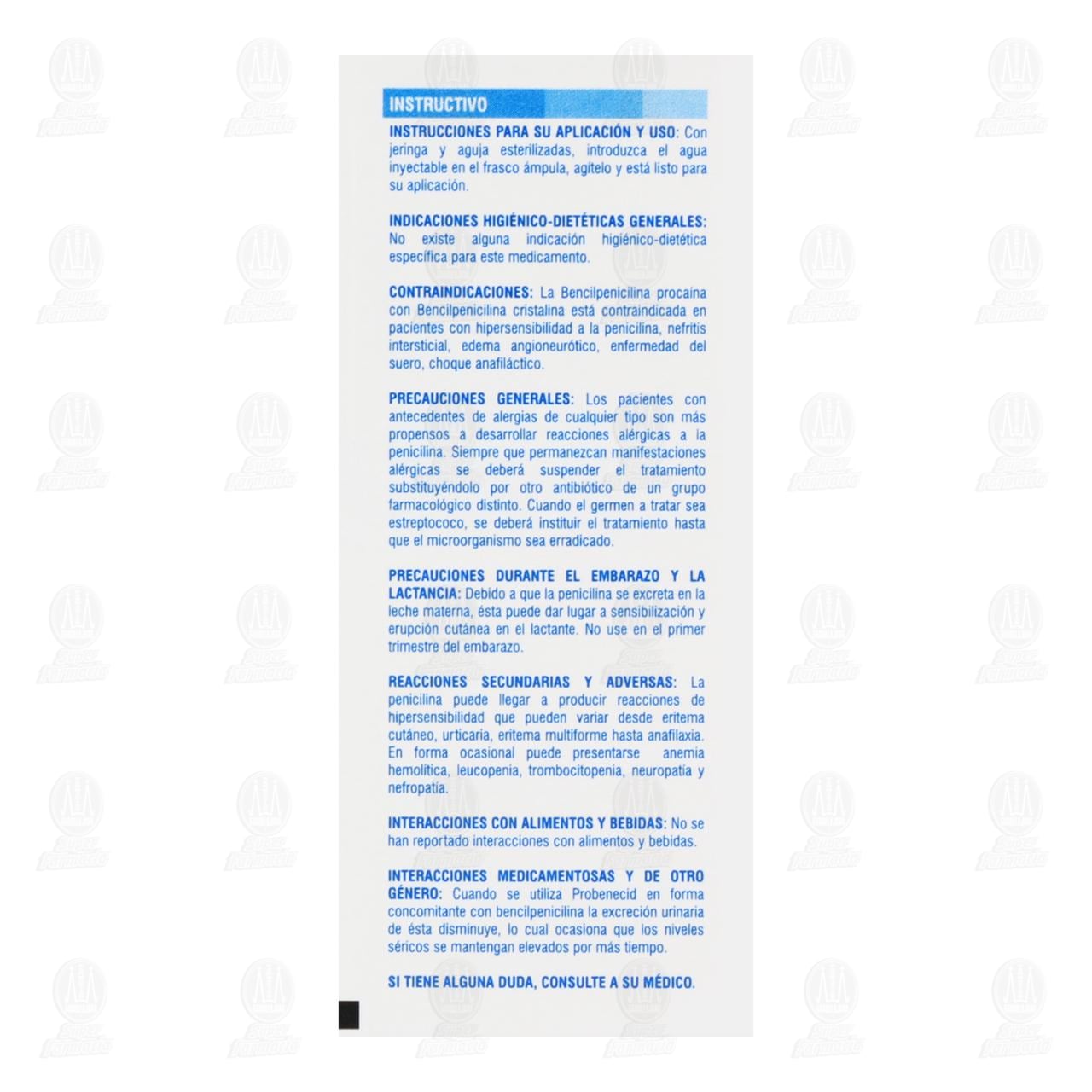 Penisodina 800,000 UI Solución Inyectable. Contiene frasco ámpula con polvo y ampolleta con 2 ml de diluyente (Bencilpenicilina procaína, Bencilpenicilina Cristalina)
