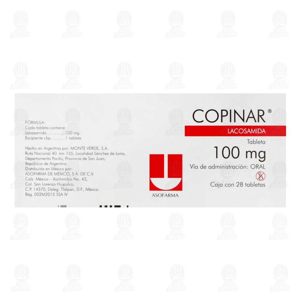 Copinar 100 mg, 28 Tabletas (Lacosamida)