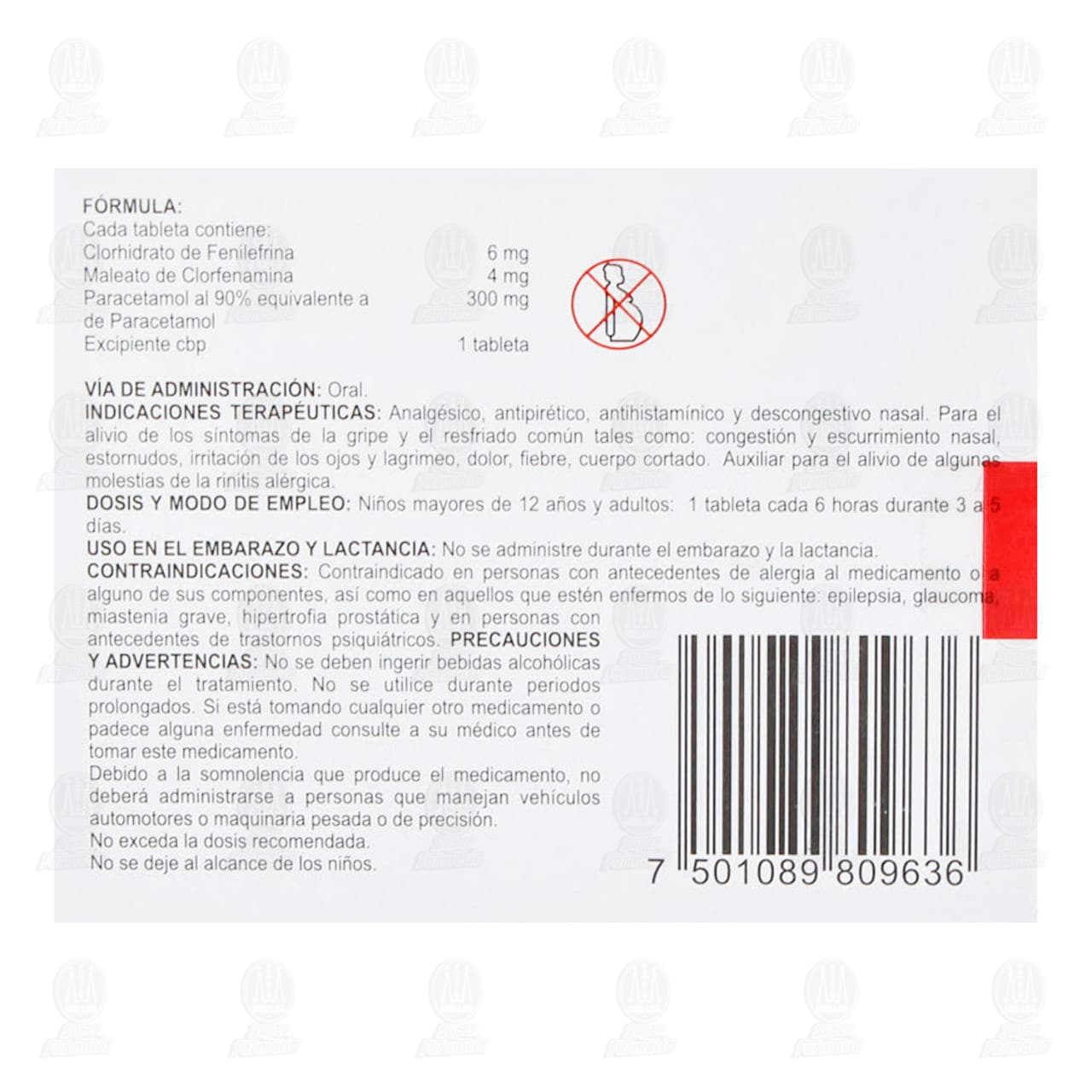 PRECAUCIONES Y ADVERTENCIAS: No se deben ingerir bebidas alcohólicas durante el tratamiento. No se utilice durante periodos prolongados. Si está tomando cualquier otro medicamento o padece alguna enfermedad consulte a su médico antes de tomar este medicamento.