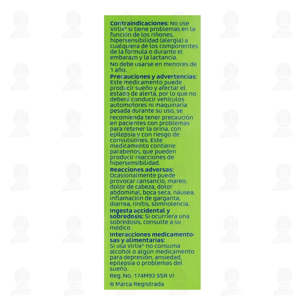 Vía de administración: Oral. Dosis y modo de empleo: Las Gotas Virlix Solución se deben diluir en agua. Bebés y niños de 1 a 2 años: 5 gotas cada 12 horas. Niños de 6 a 12 años: 20 gotas cada 24 horas. Adolescentes de 12 años y adultos: 20 gotas cada 24 horas.Detalles del producto