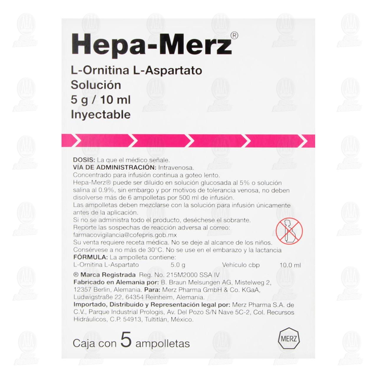 Hepa Merz 5g/10ml 5 Ampolletas, Solución Inyectable (L-ornitina, L-asparato)