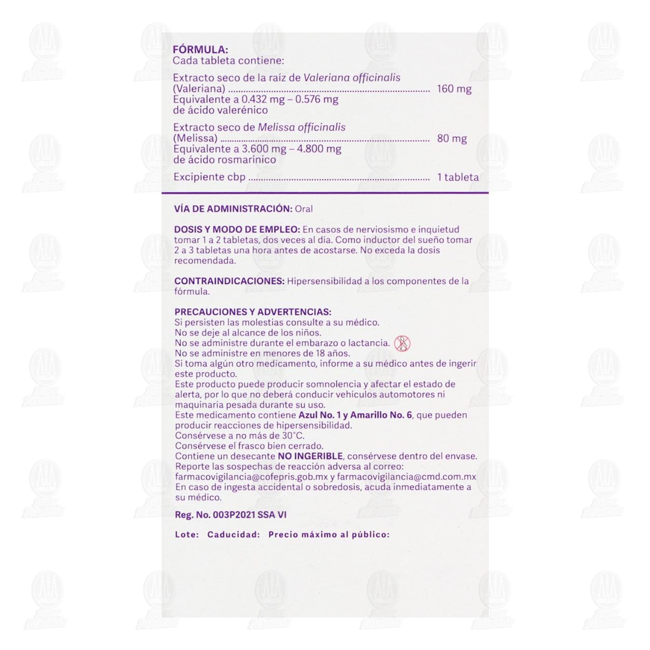 Medicamento Herbolario Botanical Doctor 160mg/80mg indicado como auxiliar en estados de nerviosismo, inquietud e insomnio. Frasco con 40 Tabletas (Valeriana officinalis, Melissa officinalis)