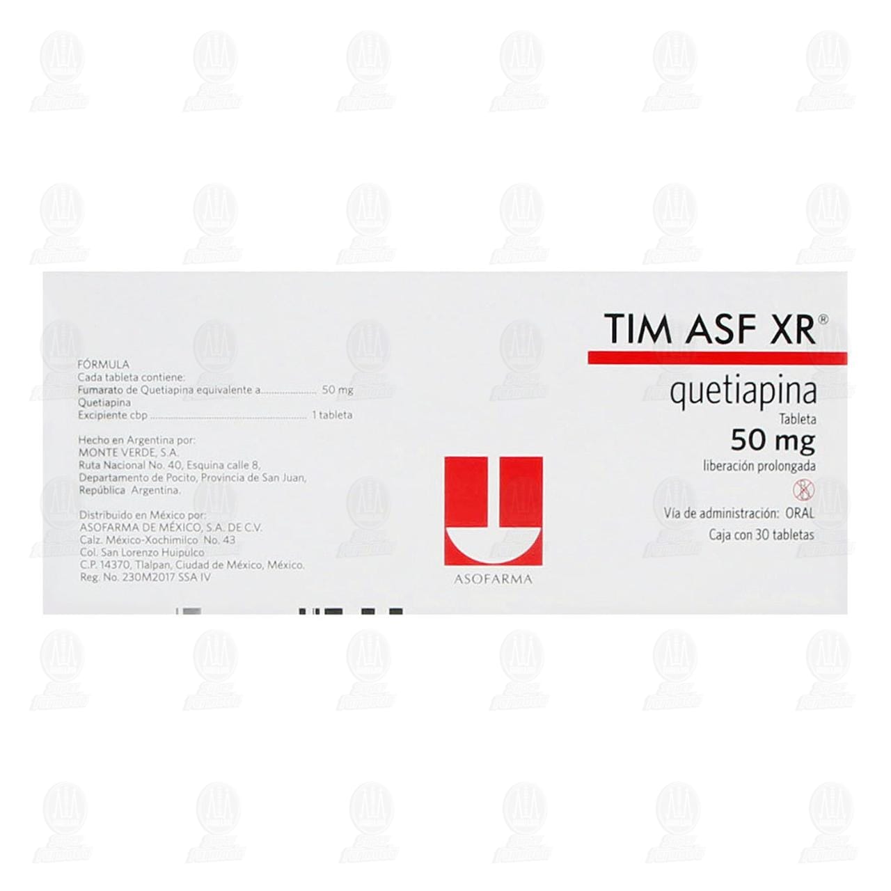 Tim ASF XR 50 mg, 30 Tabletas Liberación Prolongada (Quetiapina)