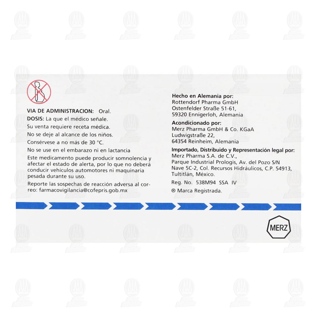 No se deje al alcance de los niños. Su venta requiere receta médica. No se use en el embarazo ni en lactancia. Este medicamento puede producir somnolencia y afectar el estado de alerta, por lo que no deberá conducir vehículos automotores ni maquinaria pesada durante su uso.