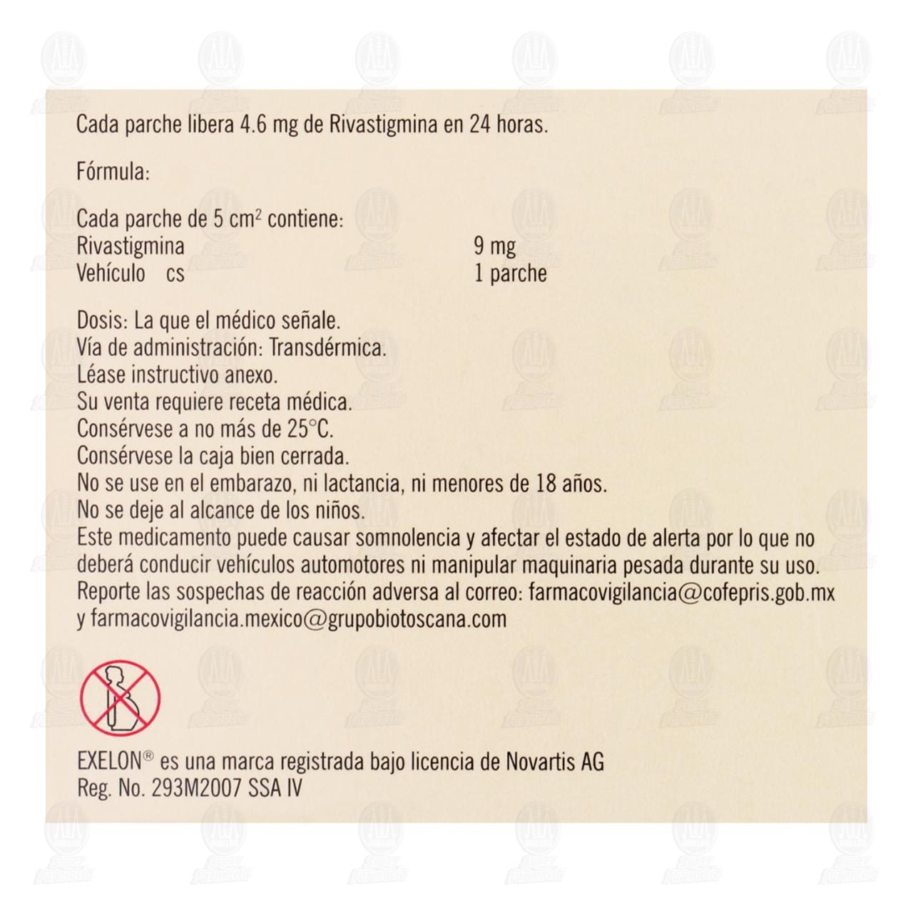 Exelon parches transdérmicos con rivastigmina utilizados como parte del cuidado de la función cognitiva y del sistema nervioso en adultos. Caja con 30 parches transdérmicos (Rivastigmina)