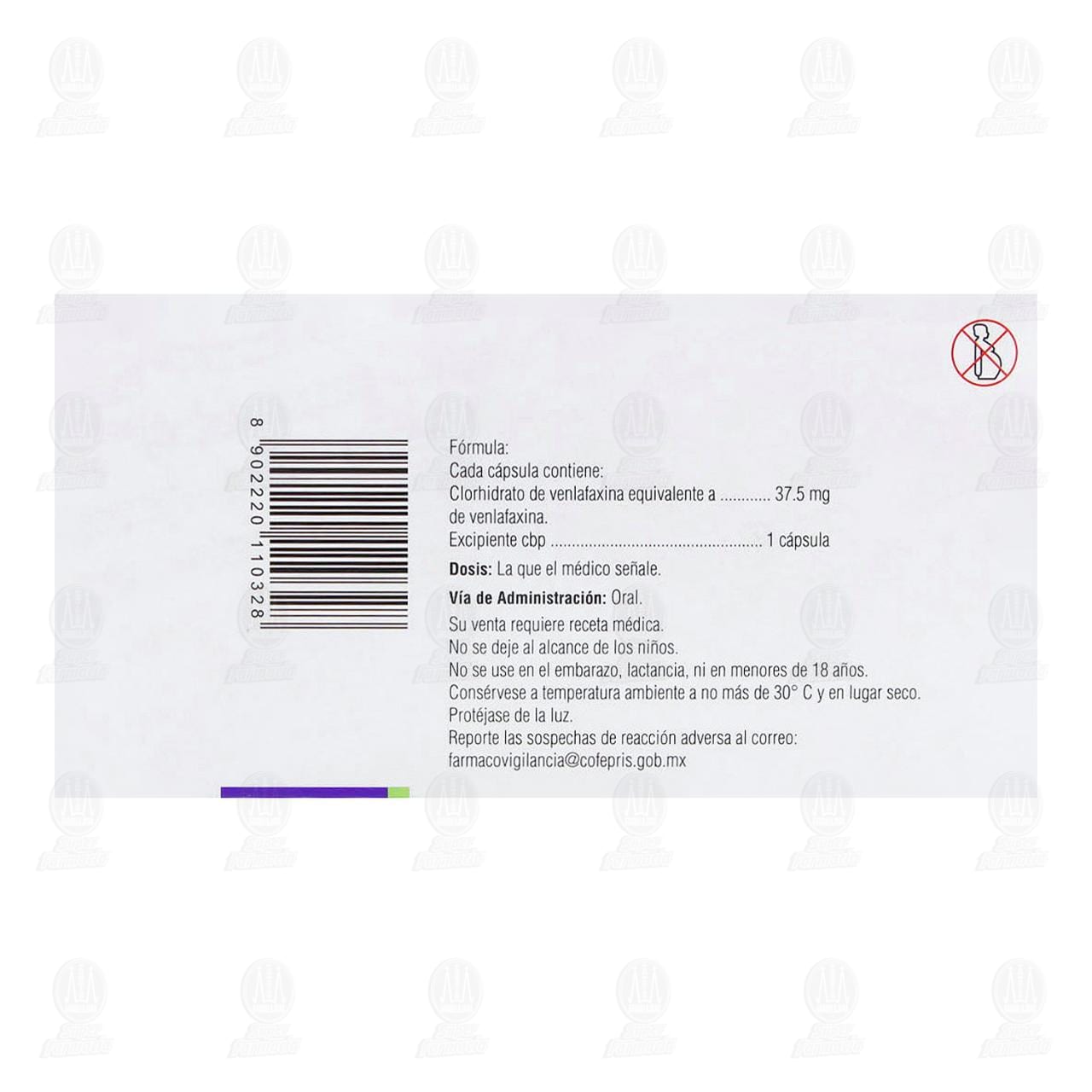 Caja con 7, 10, 14, 15, 28 ó 30 cápsulas de liberación prolongada con 37.5 mg.