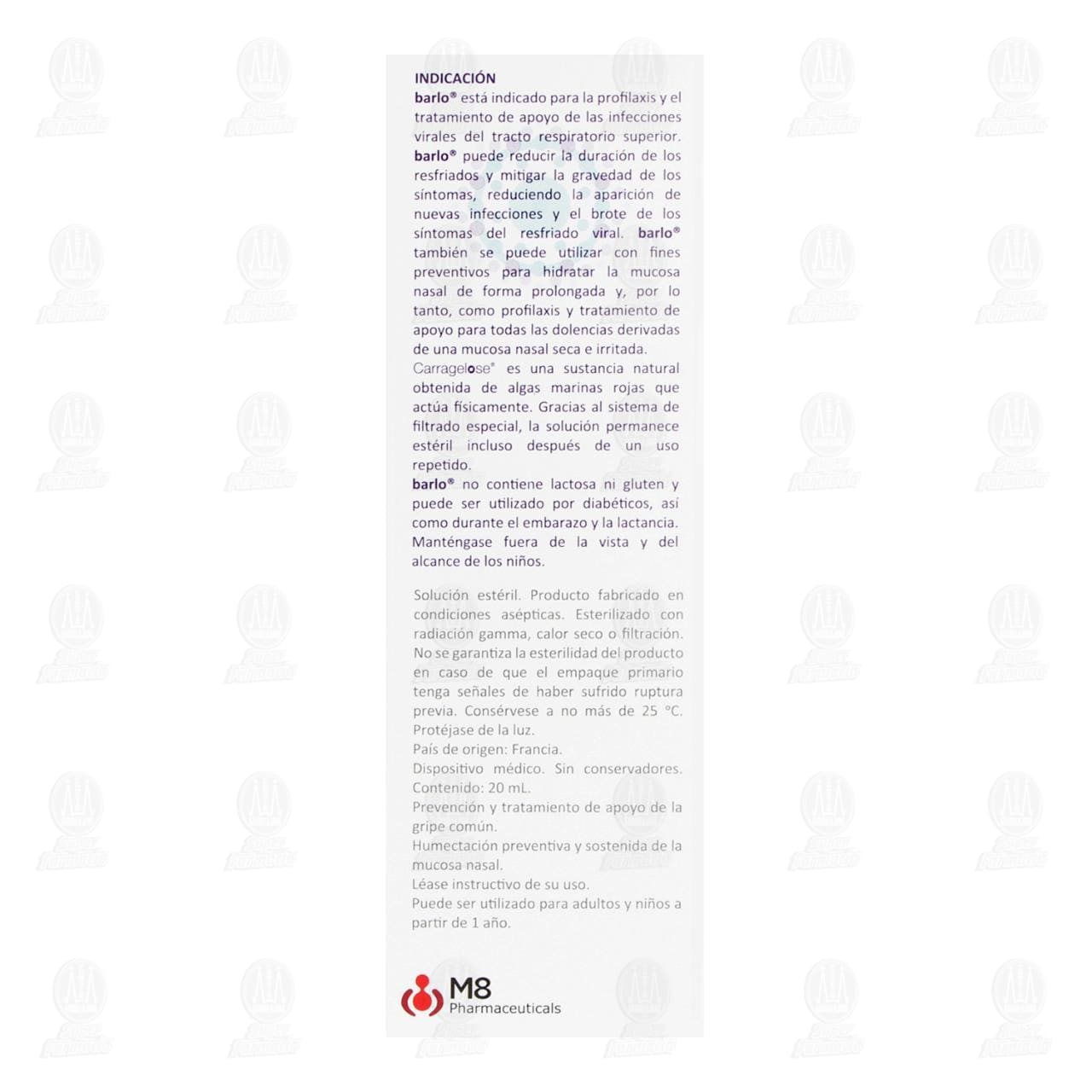 Barlo Spray Nasal Humectante Apoyo de las Infecciones Virales del Tracto respiratorio Superior, contiene 20 mililitros.