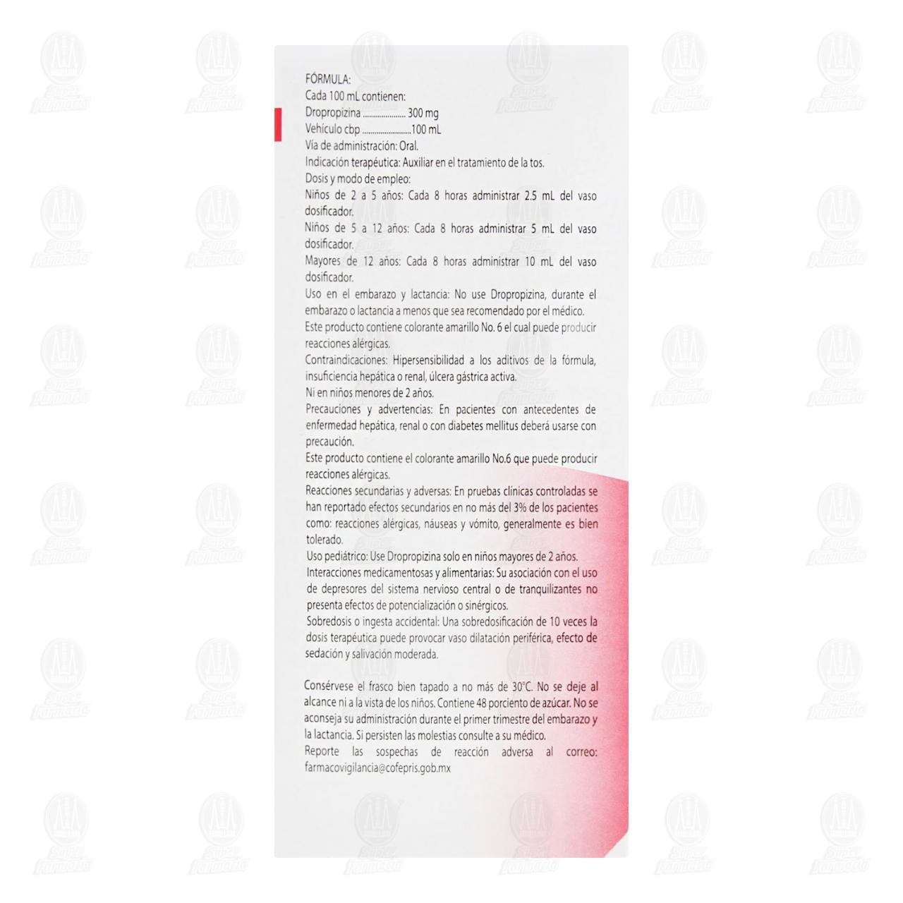 Dropropizina Jarabe 300 miligramos, Frasco con 120 mililitros Pharmalife.