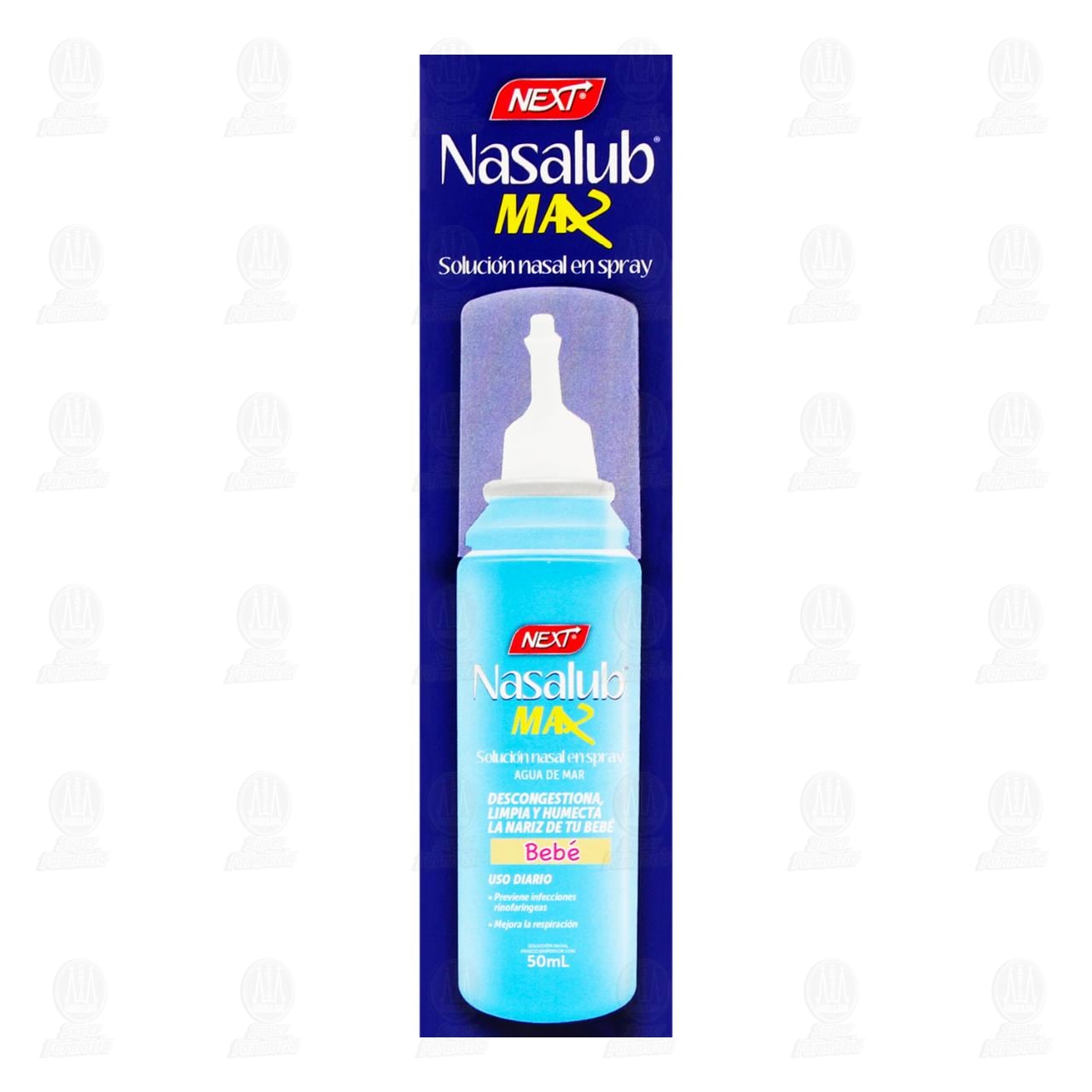 Nasalub Next bebé max solución nasal en spray de uso diario, Descongestiona, limpia y humecta la nariz de tu bebé. Contiene 50 mililitros.
