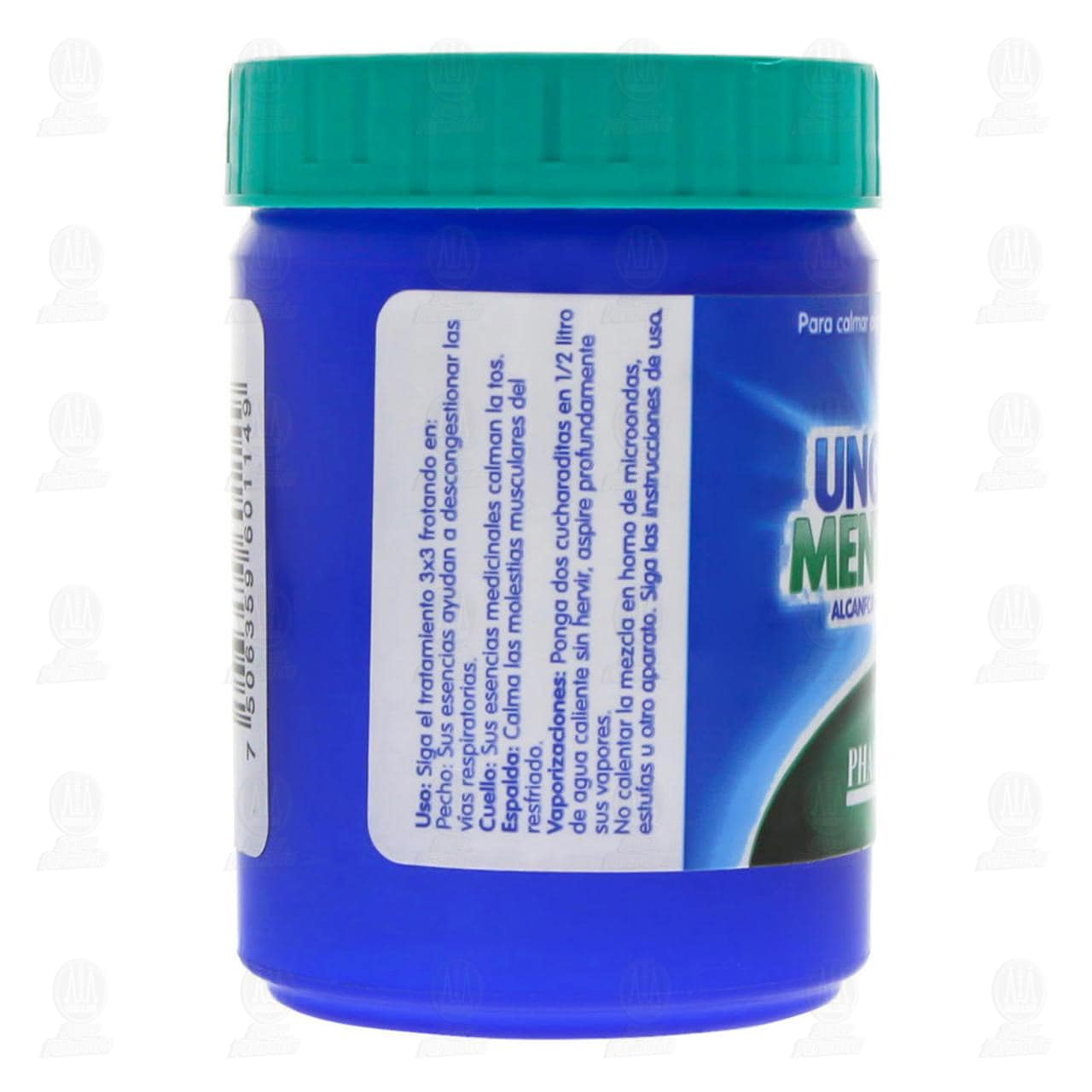 Uso: siga el tratamiento 3x3 frotando en: pecho: sus esencias ayudan a descongestionar las vías respiratorias. Cuello: sus esencias medicinales calman la tos. Espalda: calma las molestias musculares del resfriado. Vaporizaciones: ponga dos cucharaditas en 1/2 litro de agua caliente sin hervir, aspire profundamente sus vapores. No calentar la mezcla en horno de microondas, estufas u otro aparato. Siga las instrucciones de uso. Vía de administración: tópica.Detalles del producto