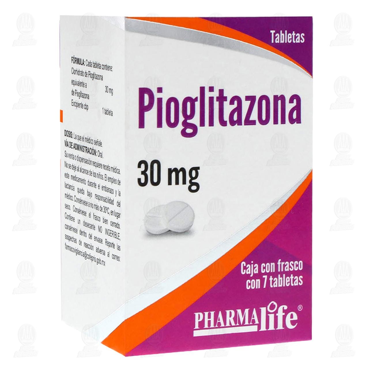 Pioglitazona 30 mg, 7 Tabletas Pharmalife.