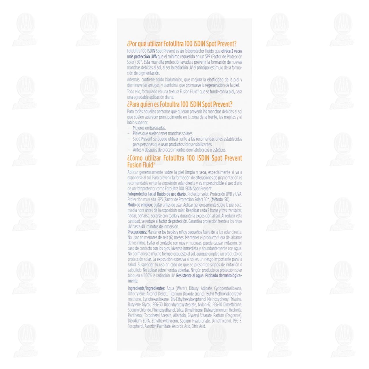Fotoprotector Isdin FotoUltra 100 Spot Prevent Fusion Fluid SPF50+, 50 ml.