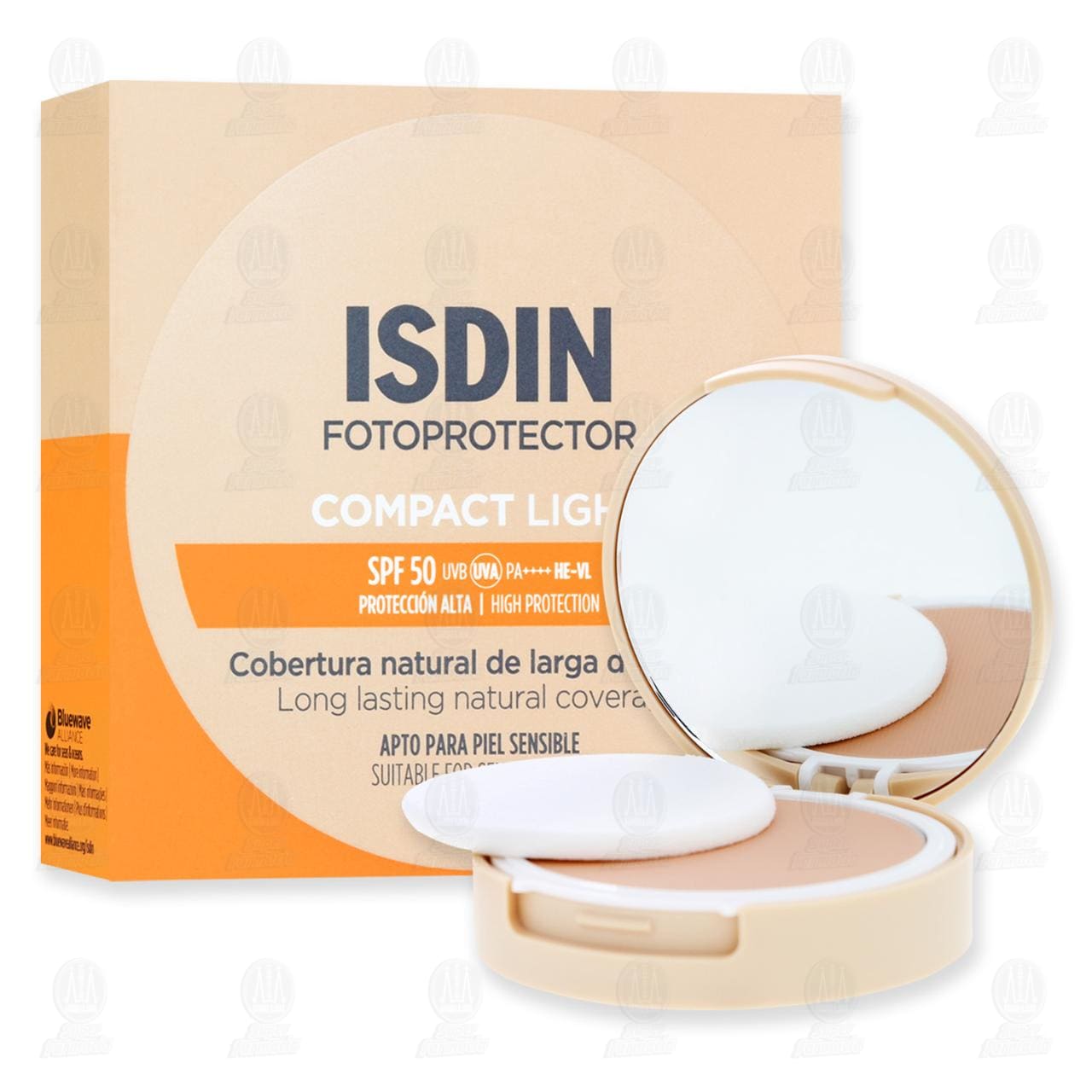 Isdin Fotoprotector Compact Light SPF 50 con cobertura natural de larga duración, apto para piel sensible y con protección UVA/UVB. Contiene 10 gramos.