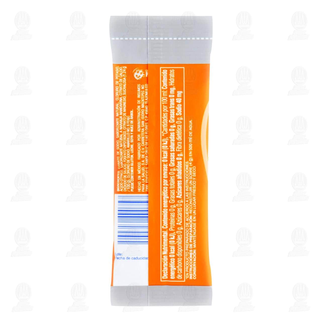Polvo Electrolife para preparar bebida hidratante sin azúcar sabor naranja-mandarina. Sobre con 4 gramos.
