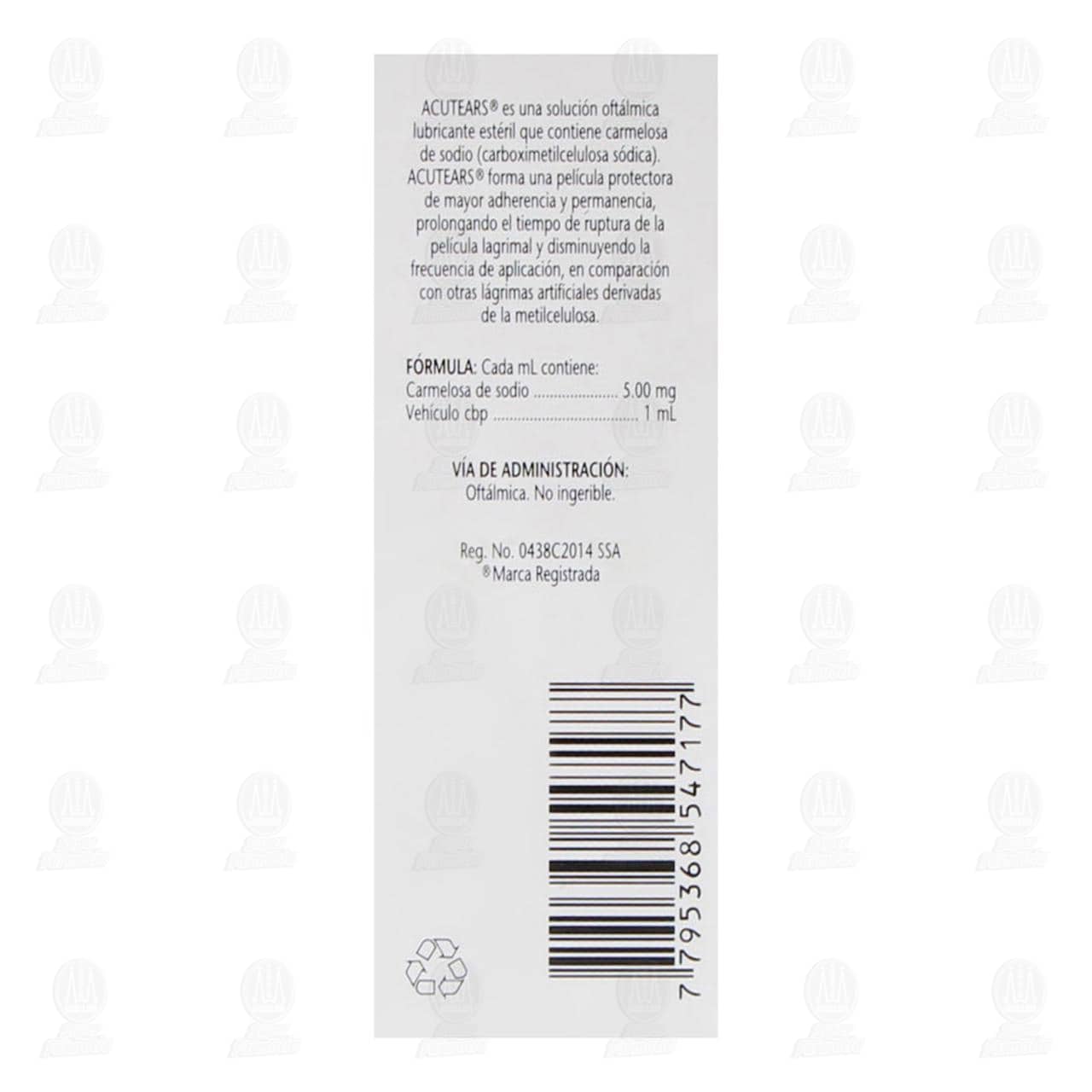 Acutears Solución Oftálmica Lubricante. Frasco Gotero con 10 mililitros.