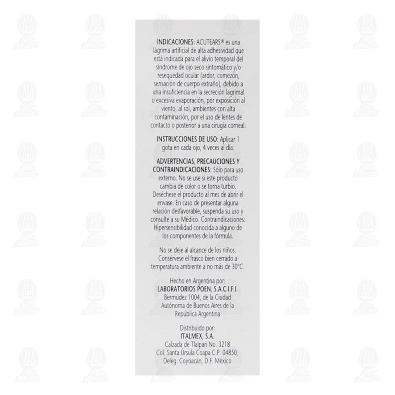 Indicaciones de uso: ACUTEARS® PLUS es una solución lubricante y humectante de la superficie ocular para el alivio temporal de las molestias asociadas a la insuficiencia lagrimal por condiciones climáticas, uso de lentes de contacto u otros factores como el síndrome de ojo seco y de Sjögren.