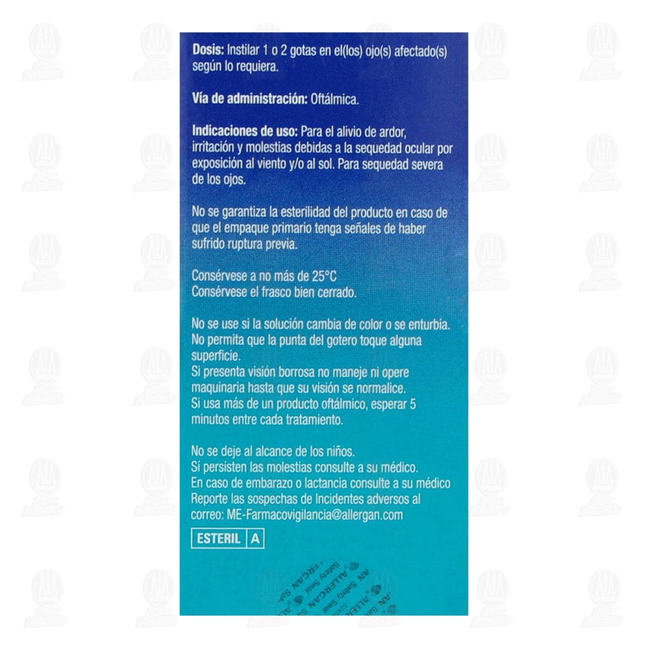 CONTRAINDICACIONES: Hipersensibilidad a los componentes de la fórmula. En caso de sentir dolor en el(los) ojo(s), algún cambio en la visión, irritación o enrojecimiento continuo de los ojos o si su condición empeora o persiste por más de 72 horas, suspenda el empleo de este producto y consulte a su oftalmólogo.