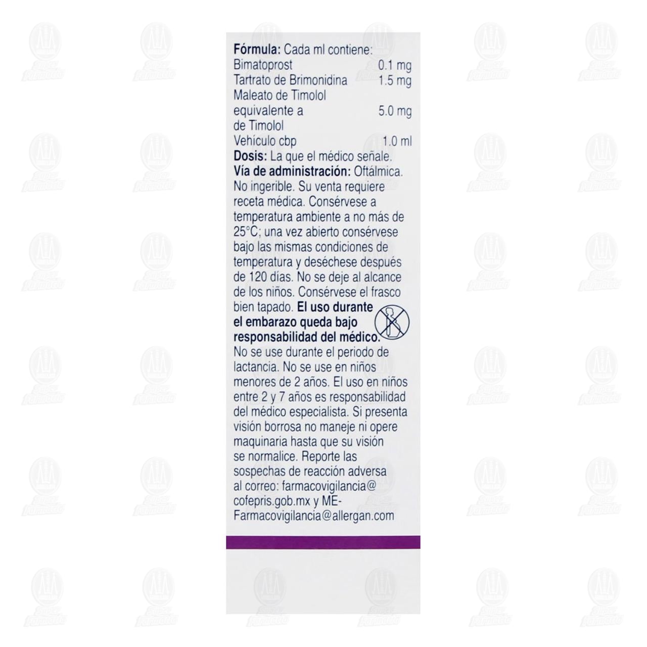 Antiglaucomatoso para reducir la presión intraocular en pacientes con glaucoma o hipertensión ocular (Bimatoprost, Tartrato de brimonidina, Timolol)