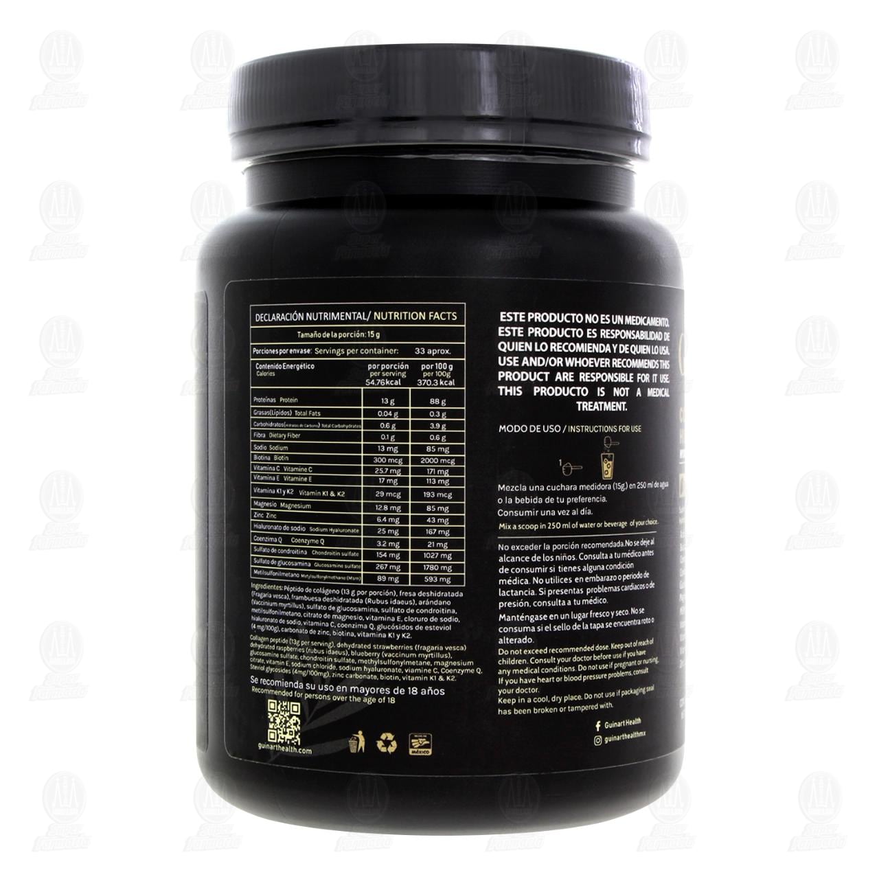 Suplemento Alimenticio Colágeno Hidrolizado Guinart Frutos Rojos en Polvo. Bote con 500 gramos.