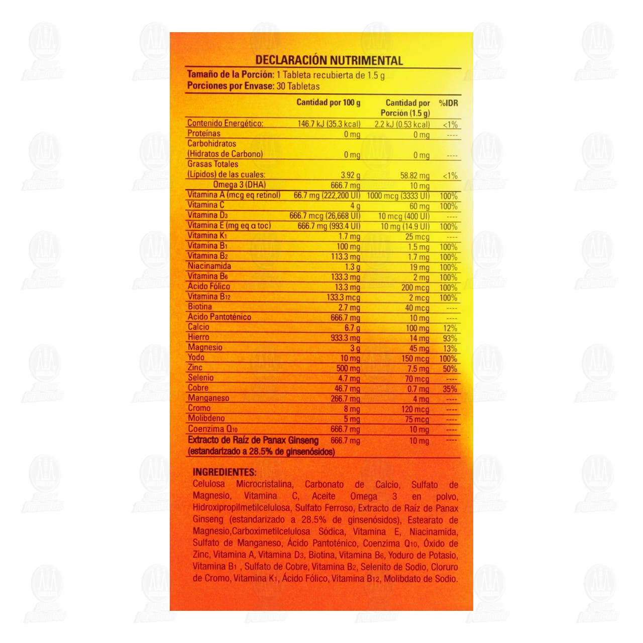 - Contiene Coenzima Q10 y Ginseng.