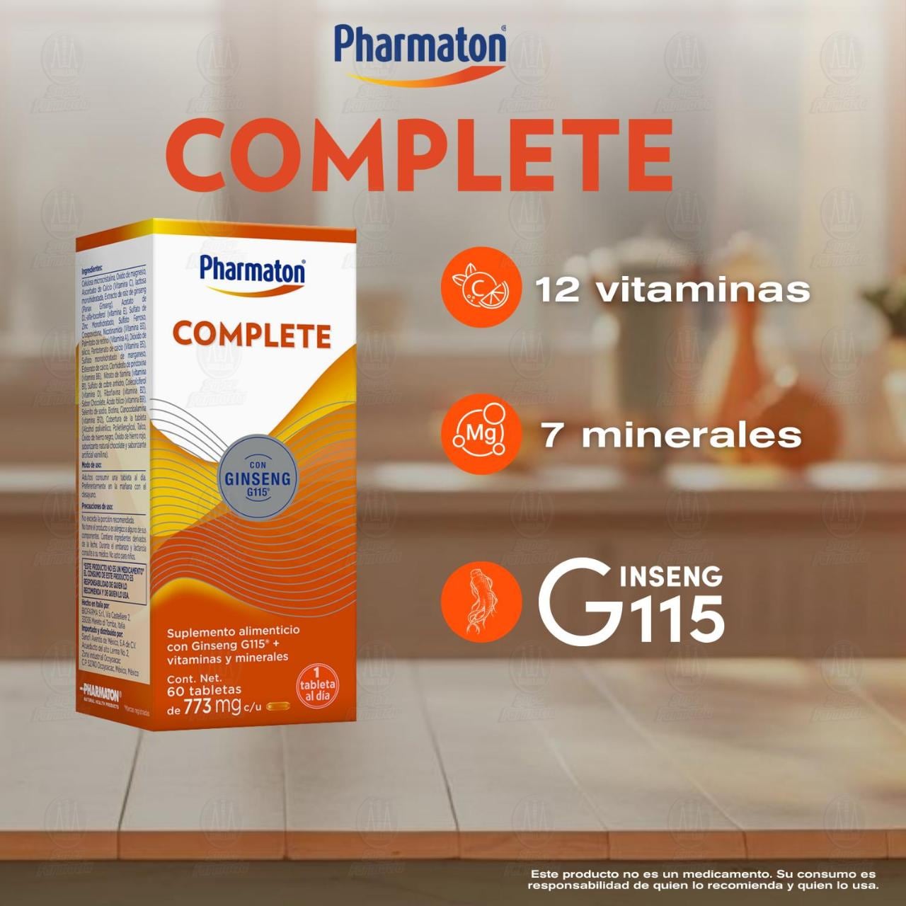 Pharmaton Complete con Ginseng G115 para Adultos, 60 Tabletas.