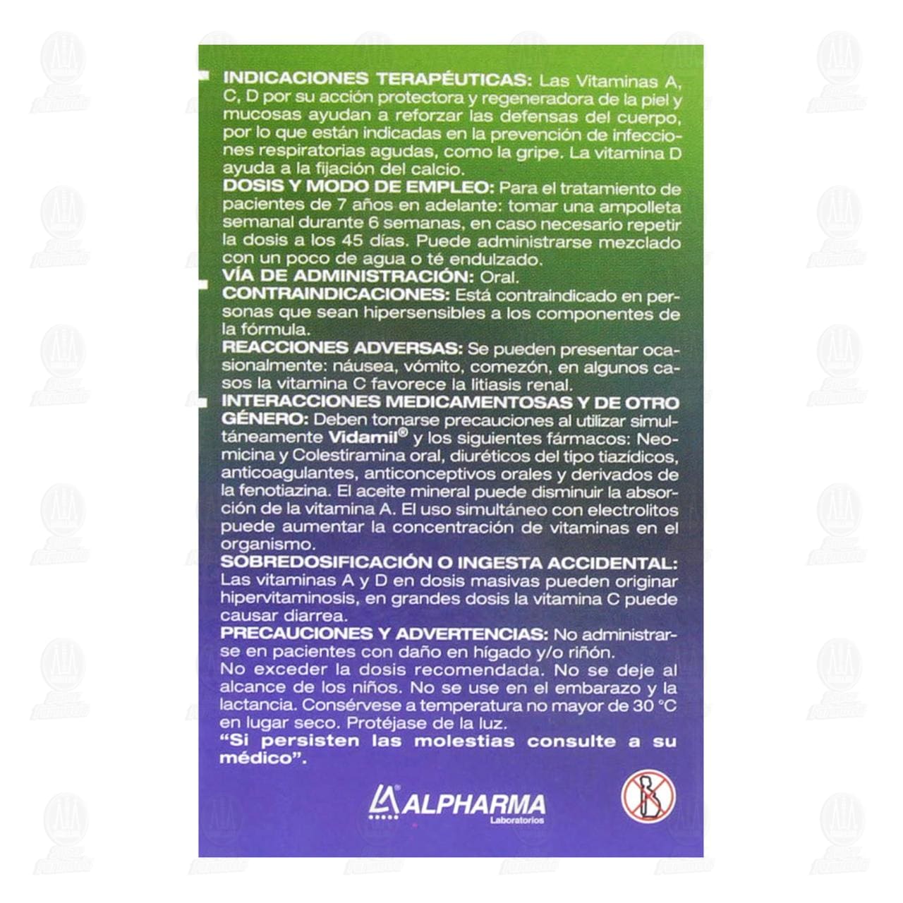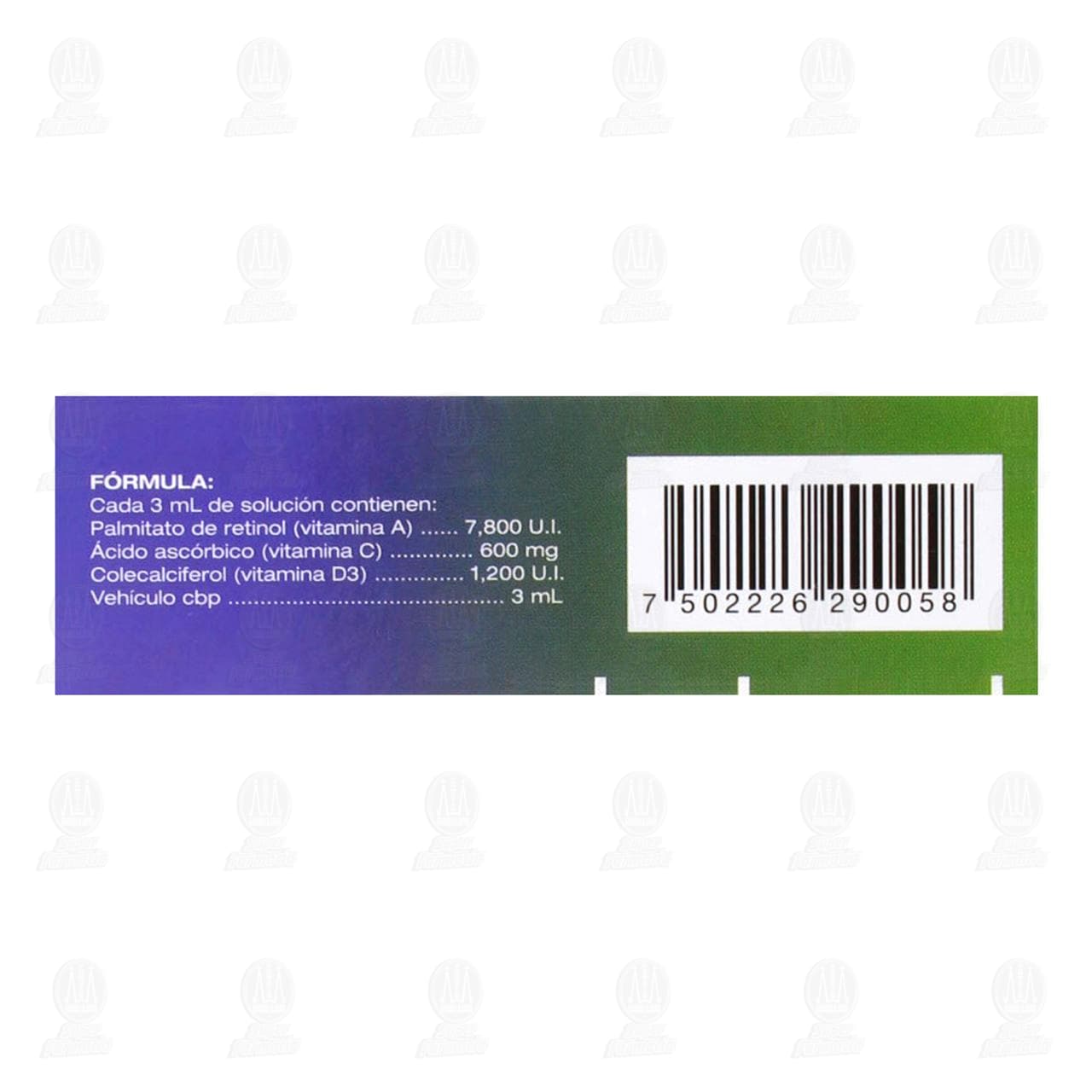 Vidamil 3 mililitros Solución Sabor Limón, Contiene 1 ampolleta con 3 mililitros (Retinol, Ácido Ascórbico, Colecalciferol)