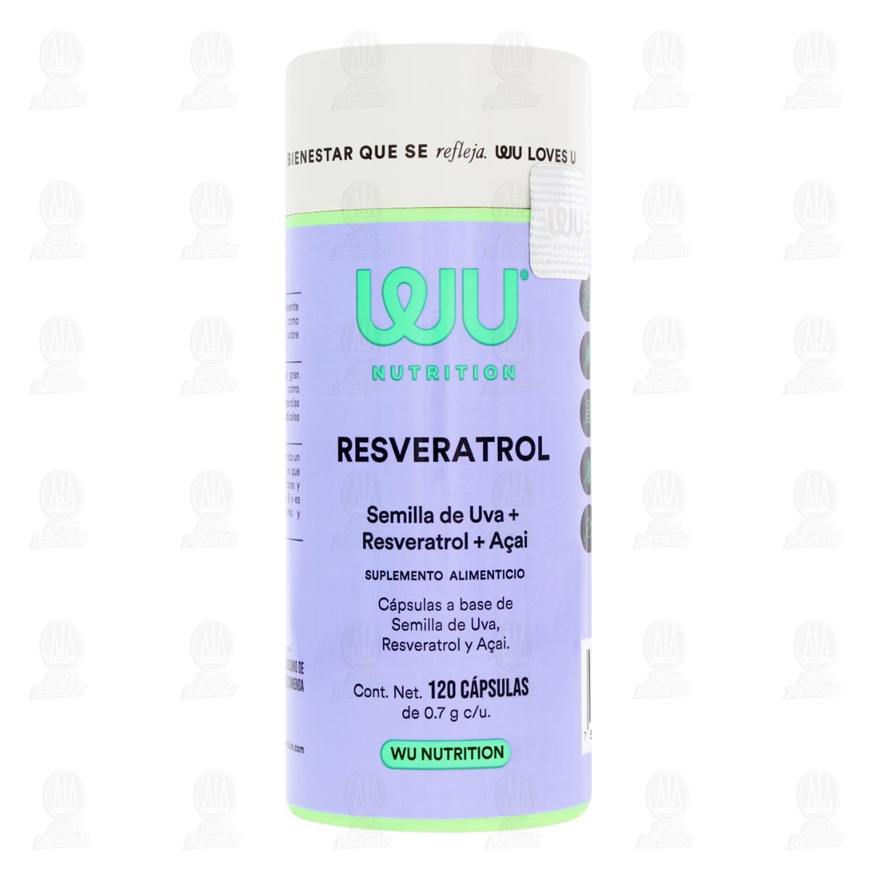 Suplemento alimenticio Wu Nutrition Resveratrol, 120 cápsulas de 0.7 gramos cada una (Semilla de uva, resveratrol, acaí)